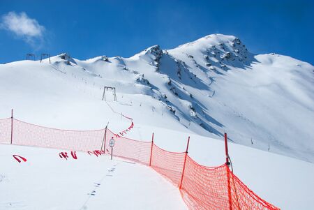 Chairlift going up the mountainside at a ski resort in the Alps, Austria