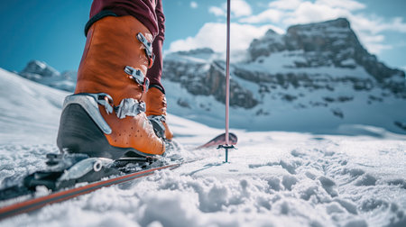 Close-up of Skiing Equipment on Snow During a Winter Day