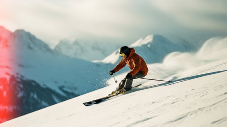 Sport man skiing on snow mountain in winter . Active and extreme sport. Peculiar AI generative image.
