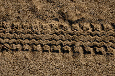 Tyre track on dirt sand or mud at forest,Off road track,Close up