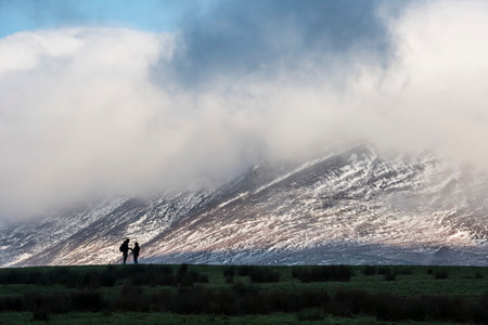 CO KERRY, IRLAND: People climbing in the snow at the Paps of Anu, Co Kerry, Ireland