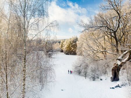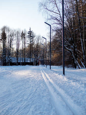 Winter Park in Moscow with Snowy Trees.