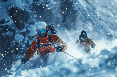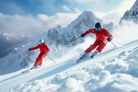 Skiing Elegance: Goggled Athletes Descend Snow-Covered Mountains