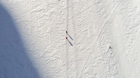 hiking people aerial from above walking in snow