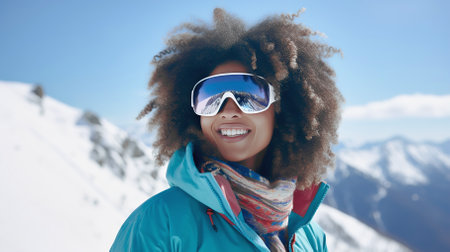 a woman wearing ski goggles and a jacket. ai generative.