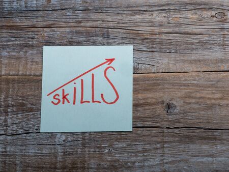 Skills written on sticky note on the wooden table or Improve Your skills Concept