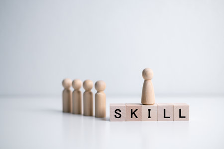Skills ability competence words in wooden blocks concept. Career and business success concept
