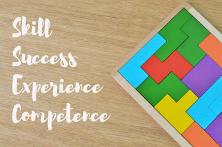 Colorful wooden blocks written with SKILL, SUCCESS, EXPERIENCE and COMPETENCE.
