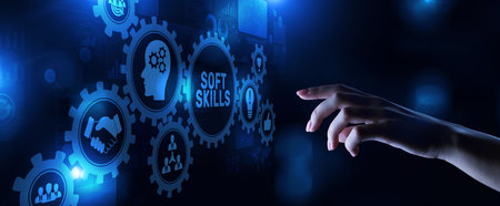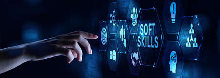 Soft skill personal development business concept on virtual screen.