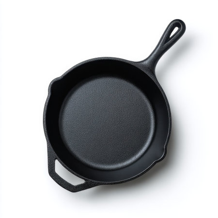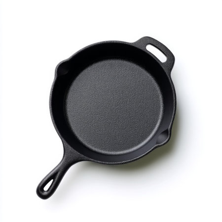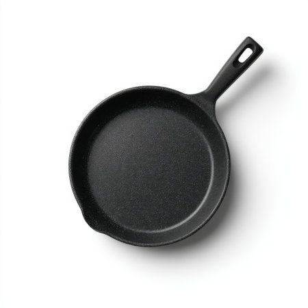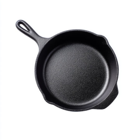 A smooth black cast iron skillet perfect for various cooking techniques, from searing meats to baking dishes, suitable for home and professional chefs.
