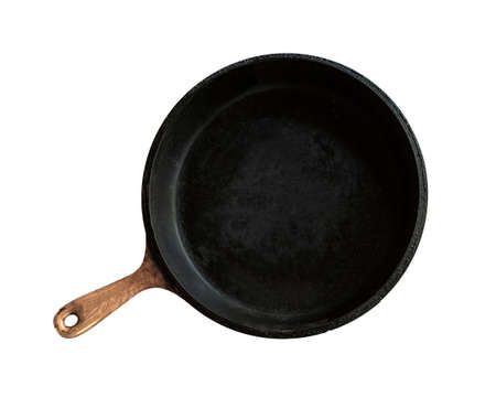Cast iron pan. Kitchenware on white background. Top view. Presentation.