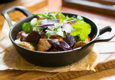 served grilled vegetables in cooking pan