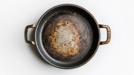 Old frying pan with a lot of grease