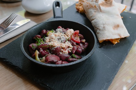 Fried beans in a frying pan