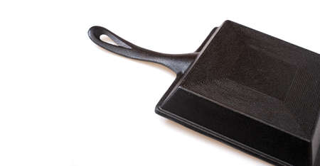 Black square cast iron frying pan isolated on white background