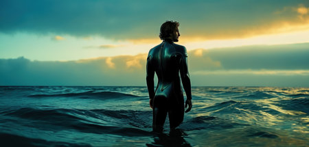 Surfer ocean background generative ai