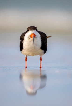 Black Skimmer standing on beach at low tide