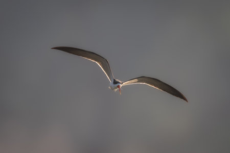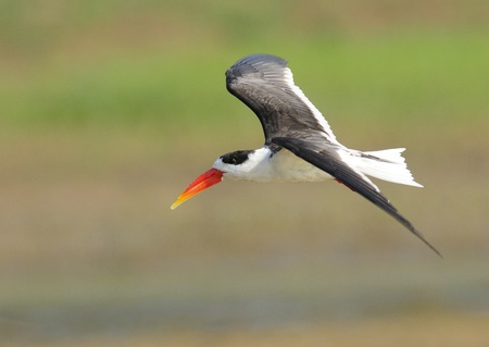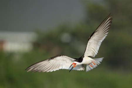 African skimmer flying with fish in beak