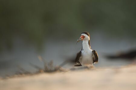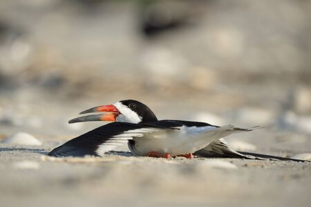 Black skimmer on the beach on Florida - skimming with wings flat