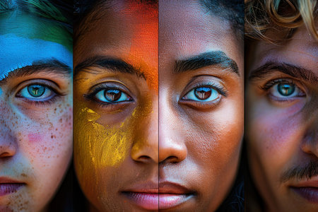 Diverse Collage of Womens Faces with Colorful Painted Features Representing Equality and Individuality