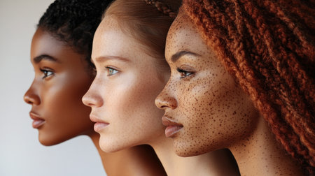 Profile side view portrait of diverse young beautiful women.AI Generative.