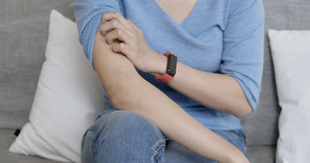 Woman having itchy and scratching her hand
