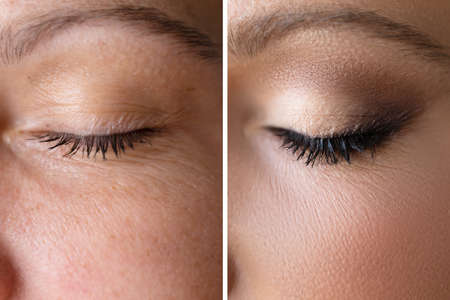 Portrait of a woman's face with problem skin. Peeling procedure. Natural beauty. Mixed media