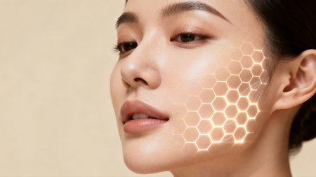 Beautiful young asian woman face with healthy skin and glowing honeycombs