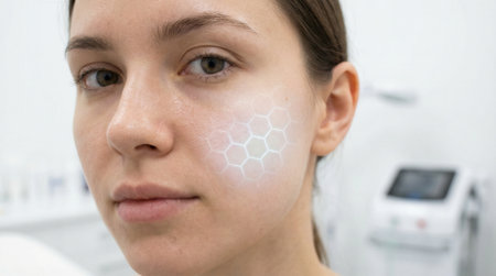 Close-up of a young woman undergoing oxygen mesotherapy treatment on her face administered by a medical professional in a clinic setting.