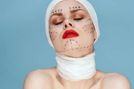female patient Red lips plastic surgery operation bare shoulders studio lifestyle
