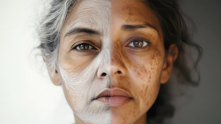 Time, Sun Damage, And Aging A Woman s Face Divided, Revealing The Impact Of Sunlight On Skin