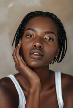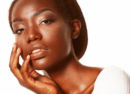 Beautful young African woman feeling the skin around her eyes