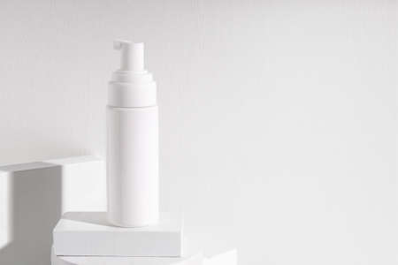 beauty treatment medical skincare cosmetic lotion cream serum mockup bottle packaging product on white decor background in healthcare pharmaceutical medicine