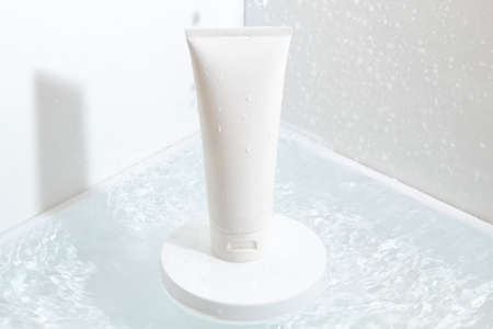 white water fresh background, cosmetic makeup bottle lotion cream product with beauty fashion skincare healthcare mockup