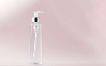 minimalistic bottle with cosmetics without inscriptions on a pink background