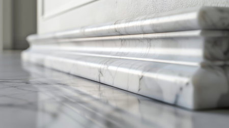 A zoomedin view of a minimalistic interior trim made of white marble showcasing its intricate ing and smooth surface