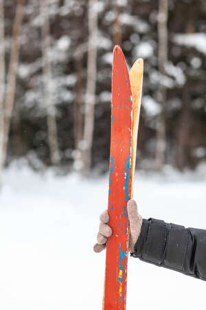 Ski on the snow at rest after a good skiing.