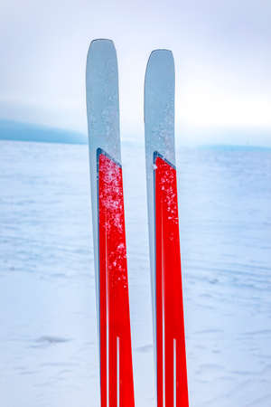 Cross-country skis in winter landscape