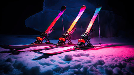 Surreal levitating skis with neon light