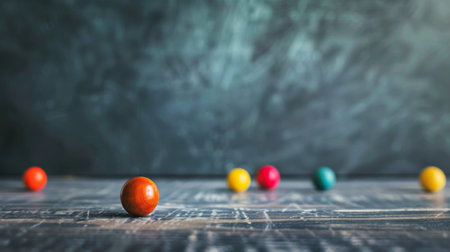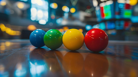 This captivating image showcases a lineup of colorful textured balls on a vibrant surface, creating an engaging visual composition with soft lighting and shadows.