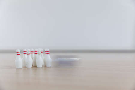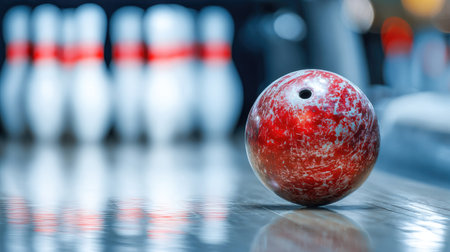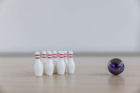 Bowling ball and pins on the bowling alley, shallow depth of field