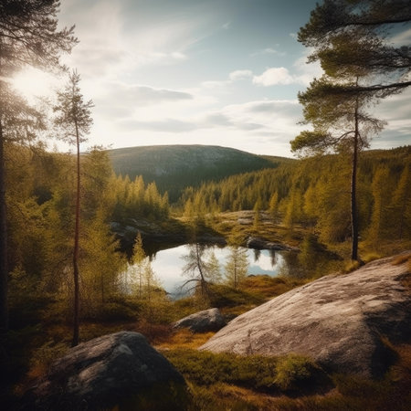 Forest reflections on the shores of quiet lakes, the tranquil beauty of the Nordic forests