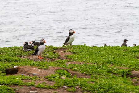 puffin birds on the Saltee Islands in Ireland, Fratercula arctica.