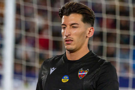 Valencia, (SPAIN) - April 10, 2022 - The goalkeeper of Levante UD Cárdenas in a match against FC Barcelona