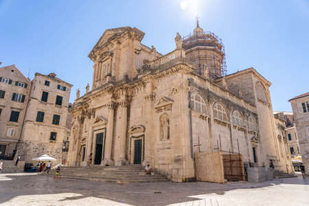 Dubrovnik, Croatia - Aug 20, 2020: Wide angle view of Cathedral of Virgin Mary in repair