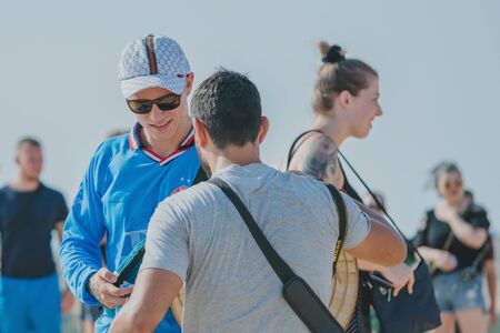 Tel Aviv Israel January 11, 2020 View of unidentified people walking on Herbert Samuel Promenade in Tel Aviv in the afternoon