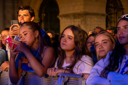 FARO, PORTUGAL: 5th SEPTEMBER, 2024 - Audience watch music artist in the Music Festival F, a big festival on the city of Faro, Portugal