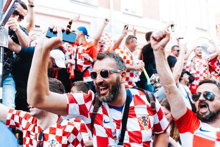 Nizhny Novgorod, Russia - June, 2018 - Croatian fans celebrate their victory against Argentina at the 2018 FIFA World Cup.