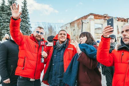 MOSCOW REGION, FRYAZINO, GREBNEVO ESTATE - MARCH 09 2019: Samy Naceri French star and actor of Taxi films and his brother Bibi Nacery visiting the Grebnevo estate during Maslenitsa celebration