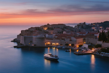 Dubrovnik old town in Croatia at sunrise, Adriatic sea